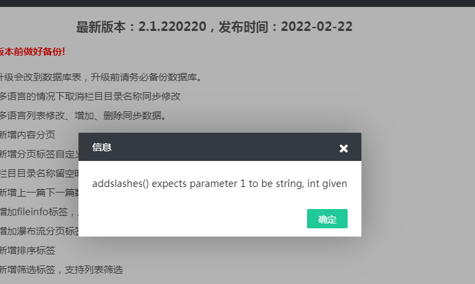 感谢反馈,这边已注意到这个情况: 已发布解决方案如下地址: https://www.hkcms.cn/help/azbs/127.html 程序在升级时会备份数据库,路径在:根目录\runtime\admin\backup 本次版本更新较大,建议手动备份好数据。